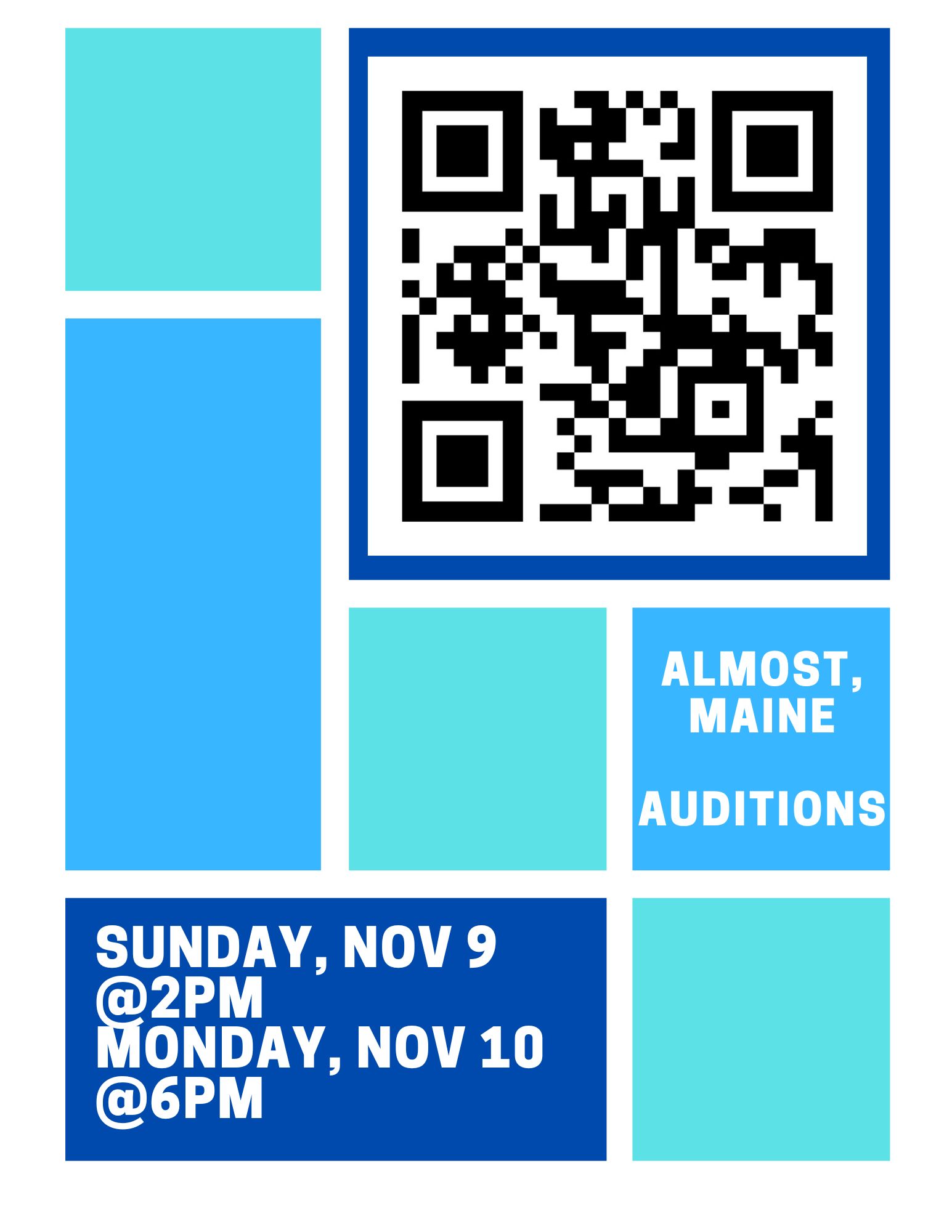 Auditions for our January performance of ALMOST, MAINE take place Nov. 9&10. All information may be found in the QR code.